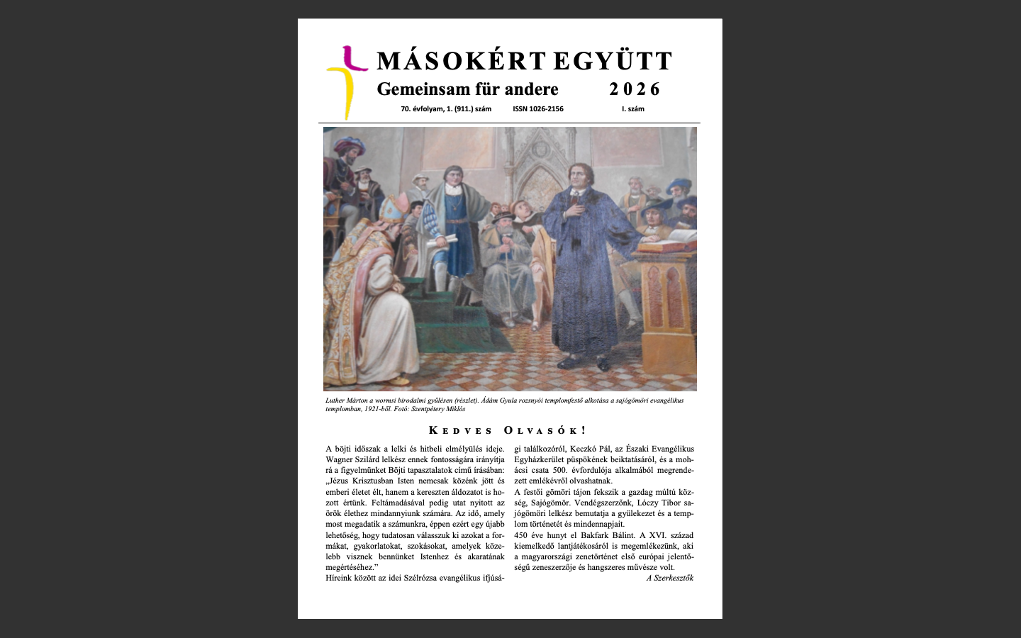 Szeretettel hívunk és várunk mindenkit evangélikus istentiszteletre 2026. április 26-án 15 órára a bécsi Markuskirchébe és 2026. április 12-én 16 órára a grazi Heilandskirchébe.